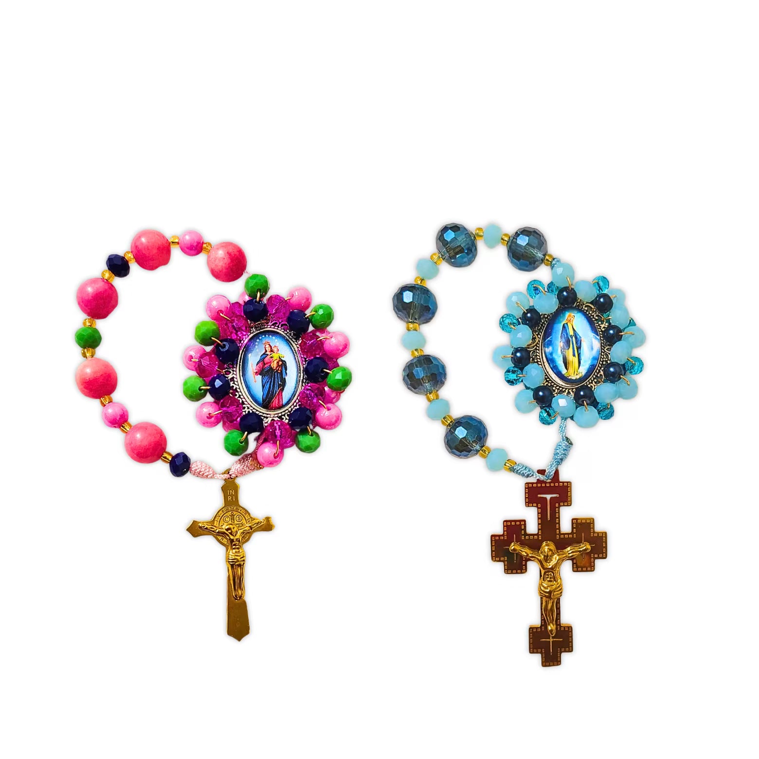 Dos denarios artesanales combinado, elaborados con cuentas facetadas y cruces metálicas. Perfectos como símbolo de fe y unión espiritual en pareja.